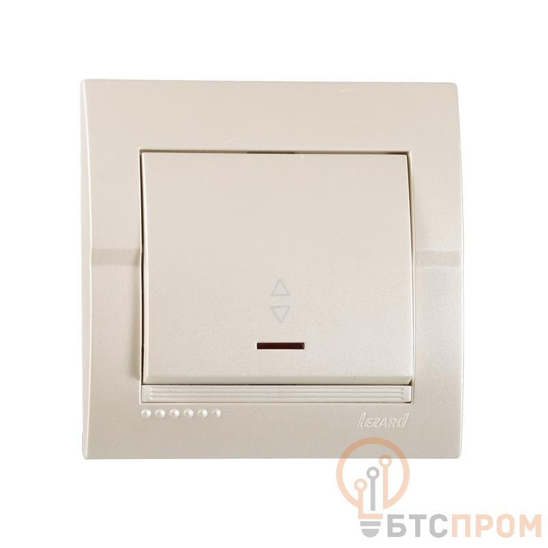 Переключатель проходной 1-кл. СП Deriy 10А с подсветкой жемчуж./бел. метал. LEZARD 702-3030-114 фото в каталоге от BTSprom.by