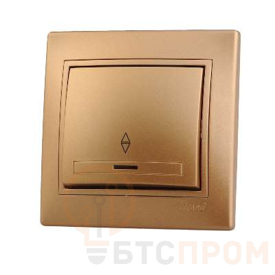 Переключатель проходной 1-кл. СП Mira 10А IP20 с подсветкой со вставкой зол. метал. LEZARD 701-1313-114