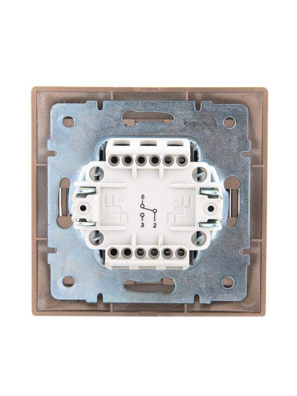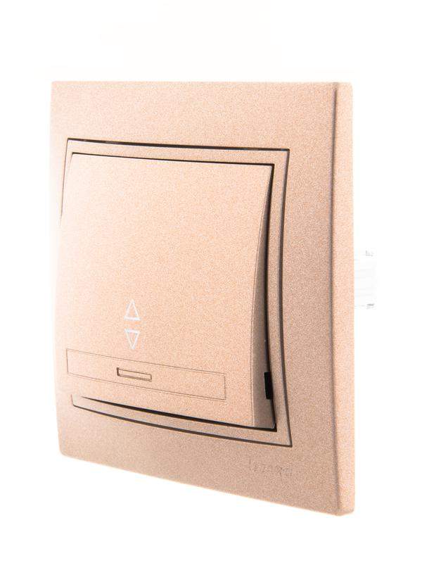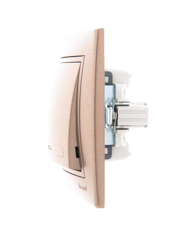 Переключатель проходной 1-кл. СП Mira 10А со вставкой свет. корич. перламутр. LEZARD 701-3131-105 фото в каталоге от BTSprom.by