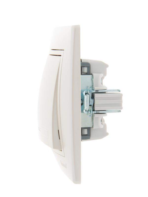 Корпус устройства выполнен из прочного самозатухающего пластика, обеспечивающего безопасность и долговечность. Элегантная клавиша со вставкой жемчужно-белого перламутра гармонично впишется в интерьер, выполненный в любом стиле — от классики до модерна. Механизм отличается плавным ходом и четкой фиксацией.