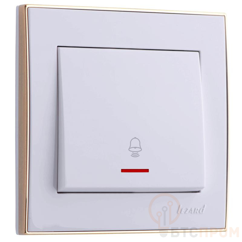 Переключатель проходной 1-кл. СП Rain 10А IP20 с подсветкой с зол. боковой вставкой бел. LEZARD 703-0226-114