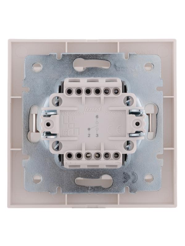 Переключатель проходной 1-кл. СП Rain 10А IP20 жемчуж./бел. метал. LEZARD 703-3030-105 фото в каталоге от BTSprom.by