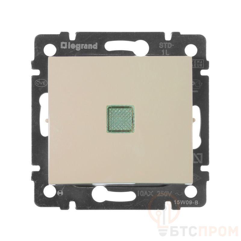 Переключатель одноклавишный с подсветкой VALENA для скрытого монтажа, номинальный ток 10 А, предназначен для управления одной нагрузкой с одного или с двух мест. Встроенная подсветка служит для упрощения поиска переключателя в темноте.