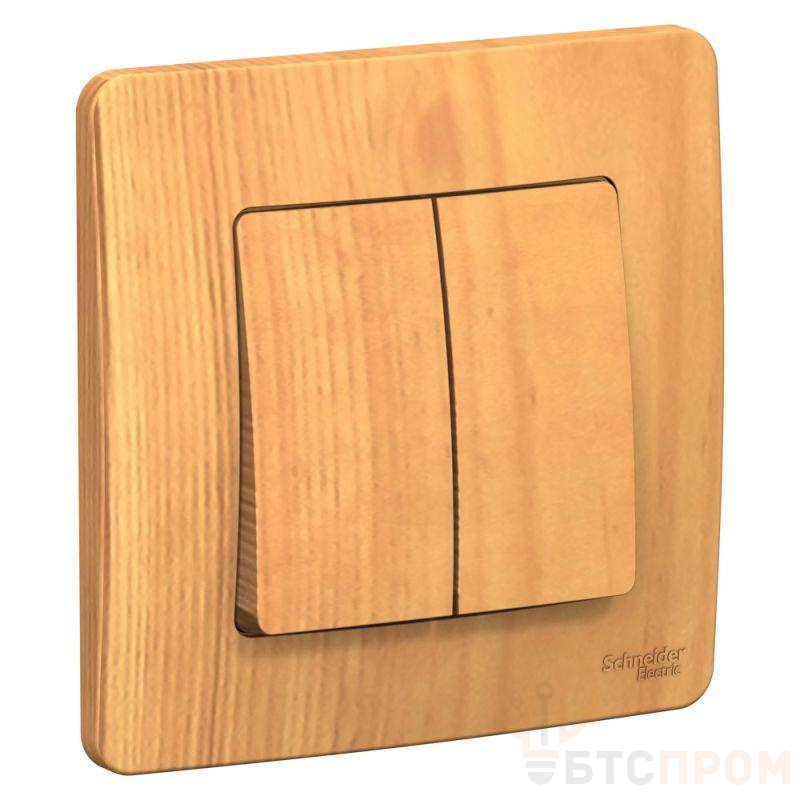 Переключатель Systeme Electric (ранее Schneider Electric) BLANCA (ясень, скрытой установки) двухклавишный предназначен для сетей до 250В, на ток до 10А. Подсветка делает его легко находимым в отсутствие освещения. Переключатель позволяет управлять одним источником света из двух точек. Изделия цвета Ясень обладают уникальным рисунком, напоминающим древесный сруб. Корпус изделия выполнен из ABS-пластика.