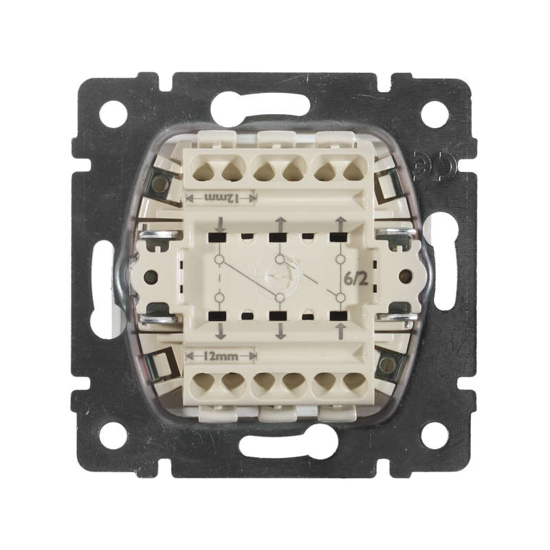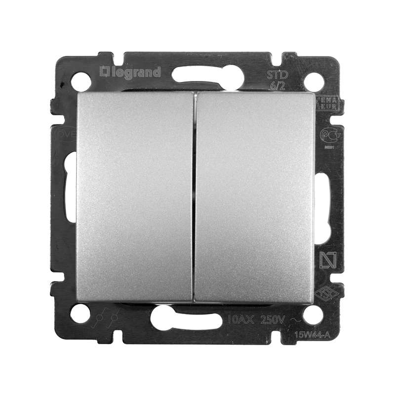 Переключатель двухклавишный VALENA для скрытого монтажа, номинальный ток 10 А, предназначен для управления двумя нагрузками с одного или с двух мест.