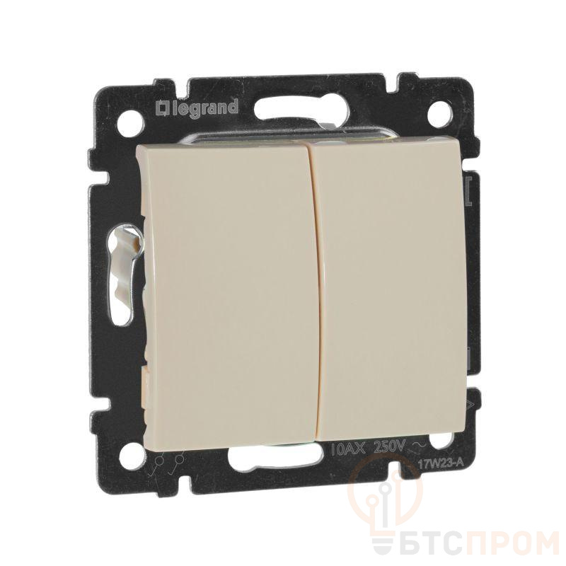 Переключатель двухклавишный VALENA для скрытого монтажа, номинальный ток 10 А, предназначен для управления двумя нагрузками с одного или с двух мест.