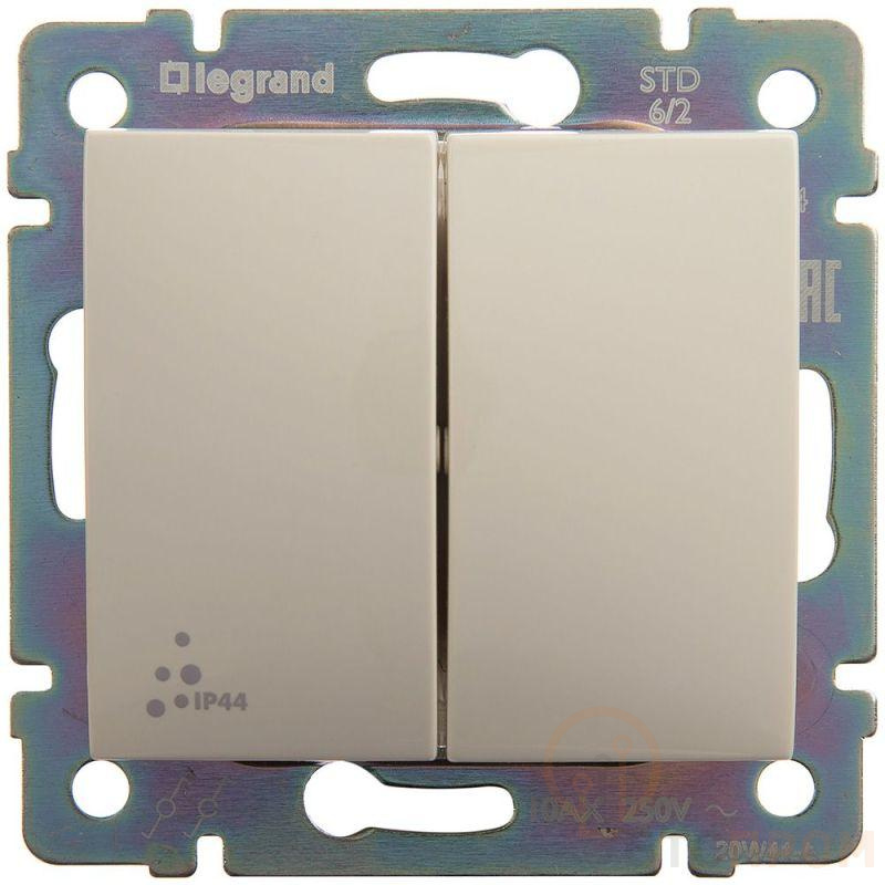 Переключатель двухклавишный IP44 VALENA - 10А 250В схема 6/2 безвинтовые зажимы. Предназначен для установки в электрических сетях жилых и общественных зданий и используется для управления приборами освещения, вентиляции и т.д. Используется для независимой коммутации двух нагрузок и управления нагрузкой с одного, двух или более мест (совместно с промежуточными выключателями). Обладает повышенной степенью пылевлагозащиты IP44 и подходит для установки в помещениях с повышенной влажностью.