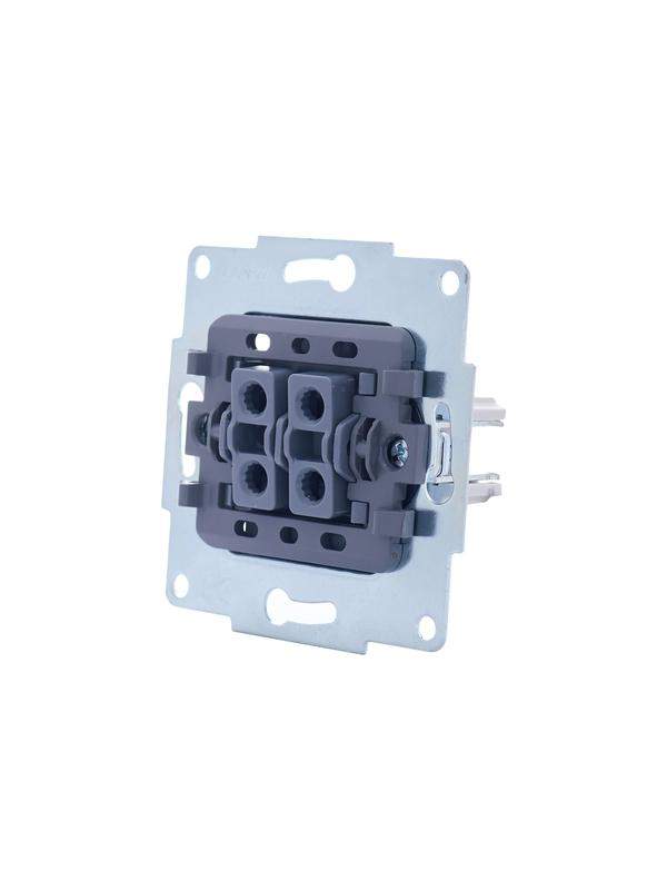 Для монтажа в стандартный подрозетник используется надежная конструкция крепления с распорными лапками и винтовыми зажимами для подключения проводников. Установка такого переключателя позволяет создавать гибкие и удобные схемы освещения, избавляя от необходимости проходить большие расстояния для включения или выключения света.