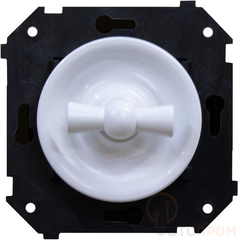 Переключатель проходной поворотный 1-кл. СП Шедель 10А ретро ABS-пластик ручка бел. механизм бел. Bironi B3-201-21