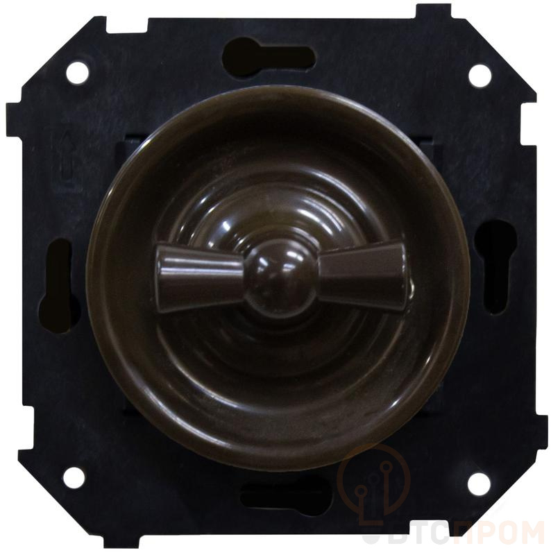 Переключатель проходной поворотный 1-кл. СП Шедель 10А ретро ABS-пластик ручка корич. механизм корич. Bironi B3-201-22
