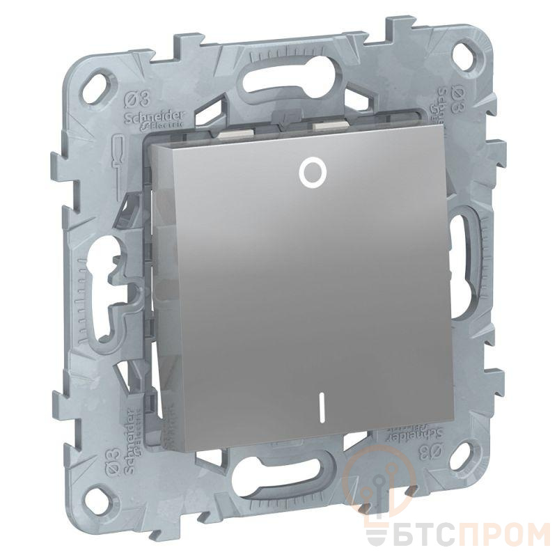 Выключатель одноклавишный Schneider Electric UNICA NEW (алюминий) двухполюсный предназначен для сетей до 250 В на ток до 16 А. - 1 нормально открытый контакт. - Специальные направляющие для облегчения ввода кабеля. - Увеличенные разделители для исключения возможности короткого замыкания.