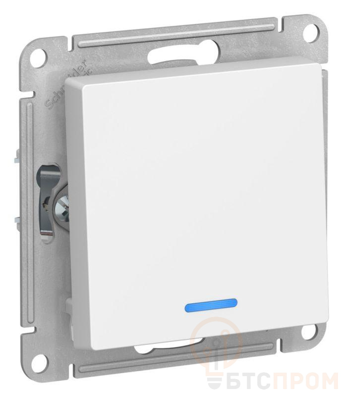 Механизм выключателя 1-клавишного с подсветкой Systeme Electric (ранее Schneider Electric) серии AtlasDesign в цвете ЛОТОС подходит для сетей 250 В, на ток 10 А. - Благодаря светодиодной подсветке синего цвета изделие легко найти в темноте. - Лицевые детали из качественного ABS-пластика, устойчивого к царапинам и УФ-излучению. - Усиленные прямые монтажные лапки для лучшей фиксации механизма в монтажной коробке.