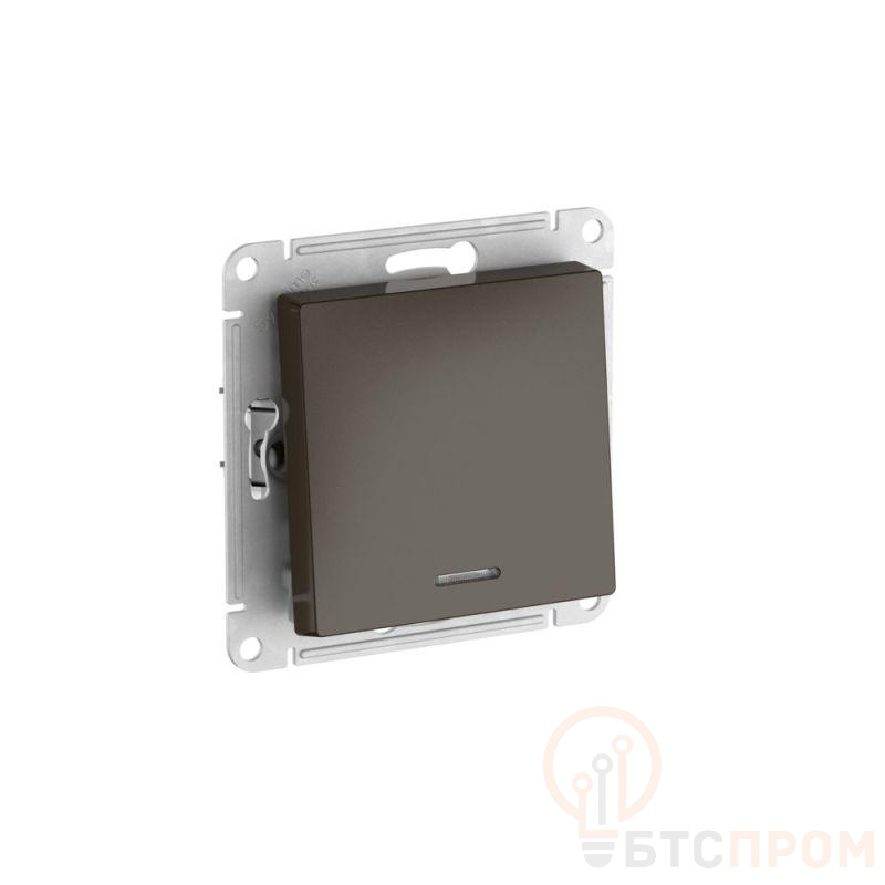 Выключатель 1-кл. AtlasDesign (сх. 1а) 10AX с подсветкой быстрозажим. клем. механизм мокко SE ATN000613S