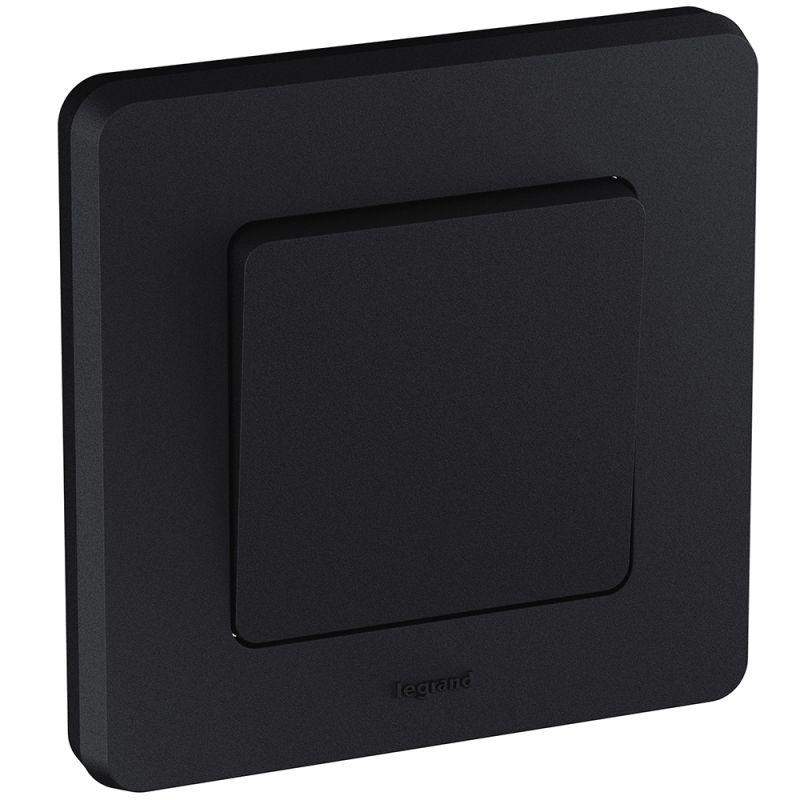 Выключатель одноклавишный скрытого монтажа Inspiria, цвет "Антрацит", номинальный ток 10АХ, напряжение ~250В, безвинтовые зажимы. Устанавливается в жилых и общественных помещениях для управления приборами освещения, вентиляции и т.д.