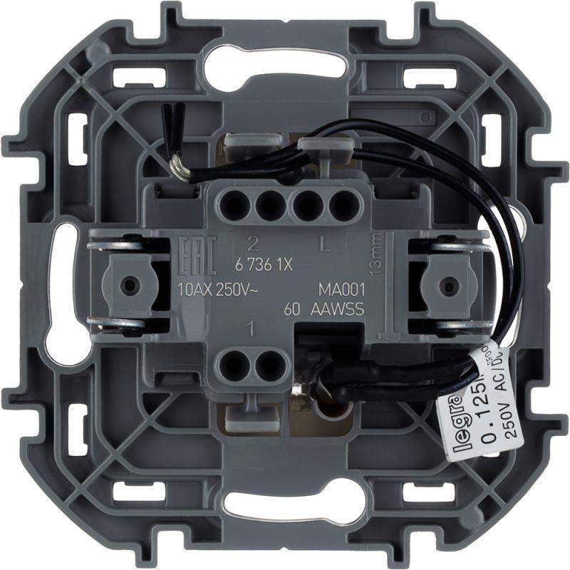 Выключатель одноклавишный с подсветкой/индикацией скрытого монтажа Inspiria, цвет "Слоновая кость", номинальный ток 10АХ, напряжение ~250В, безвинтовые зажимы. Устанавливается в жилых и общественных помещениях для управления приборами освещения, вентиляции и т.д.