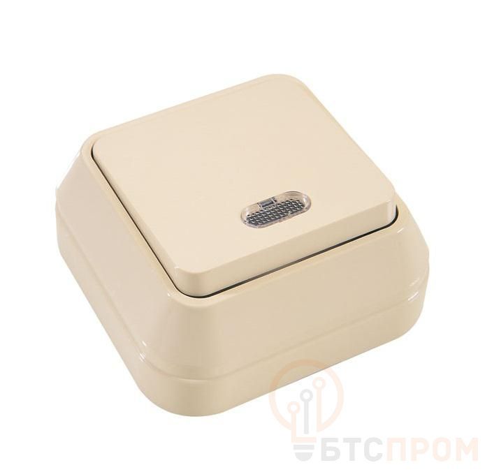 Выключатель 1-кл. ОП 10А IP20 с подсветкой крем. Makel 45221 фото в каталоге от BTSprom.by
