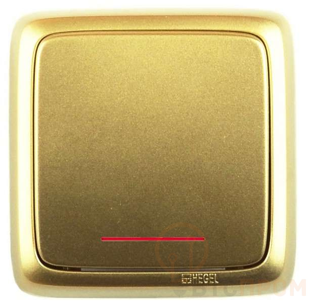 –Выключатель 1-кл. ОП Альфа 10А IP20 250В с индикацией с изолир. пластиной зол. HEGEL ВА10-114-07