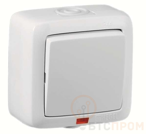 Выключатель 1-кл. ОП Альфа 10А IP44 250В с индикацией бел. HEGEL ВА10-212 фото в каталоге от BTSprom.by
