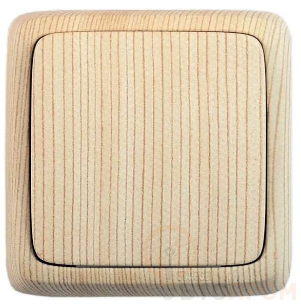 Ключевой особенностью данной модели является декоративная рамка и клавиша, выполненные из высококачественного изоляционного пластика с текстурой и цветом, имитирующими натуральную сосну. Это позволяет органично вписать выключатель в интерьеры, оформленные в эко-стиле, кантри или прованс. Наличие изолированной пластины повышает безопасность при монтаже и использовании. Выключатель предназначен для монтажа в стандартные установочные коробки и станет идеальным выбором для квартир, загородных домов, гостиниц и офисов.