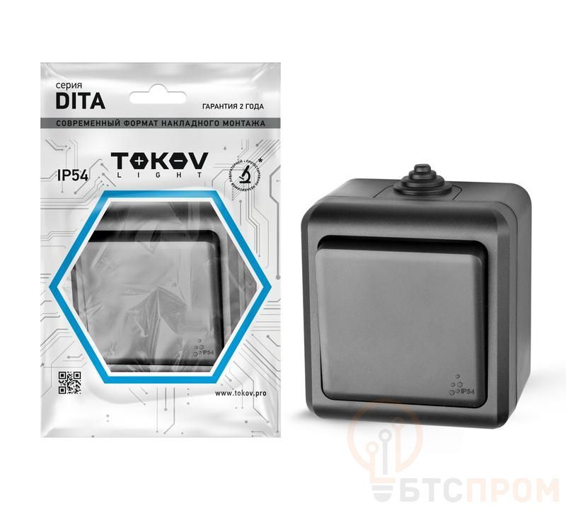 Выключатель 1-кл. ОП Dita IP54 10А 250В карбон TOKOV ELECTRIC TKL-DT-V1-C14-IP54 фото в каталоге от BTSprom.by
