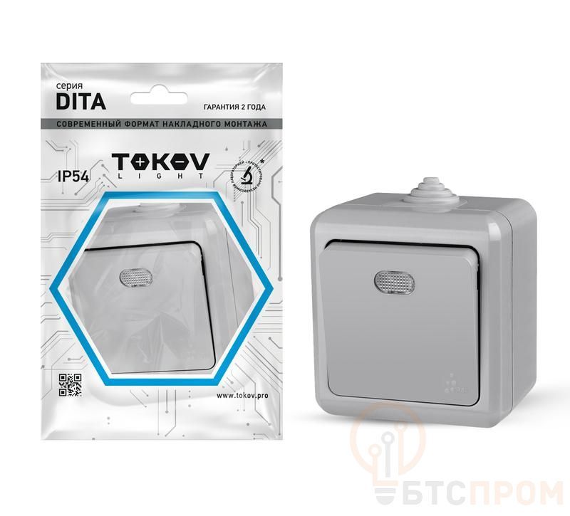 выключатель 1-кл. оп dita ip54 10а 250в сер. tokov electric tkl-dt-v1-c06-ip54 от BTSprom.by