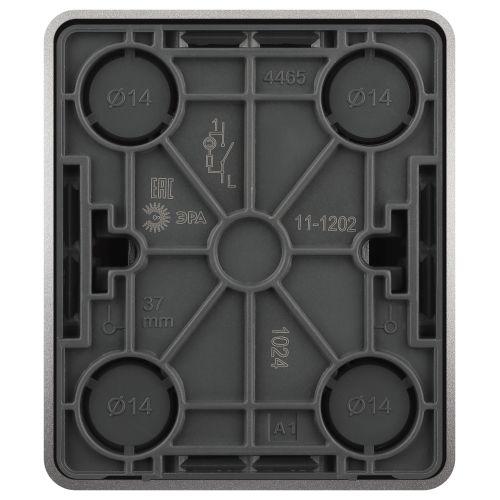 Выключатель 1-клавишный с подсветкой серии Эра Эксперт открытой установки цвет алюминий 11-1202-03. Номинальные характеристики 10А 250В . Выключатель выполнен из качественного поликарбоната, оснащён уникальными винтовыми клеммами ЭКСПЕРТ для максимально качественного зажима кабеля в механизме.