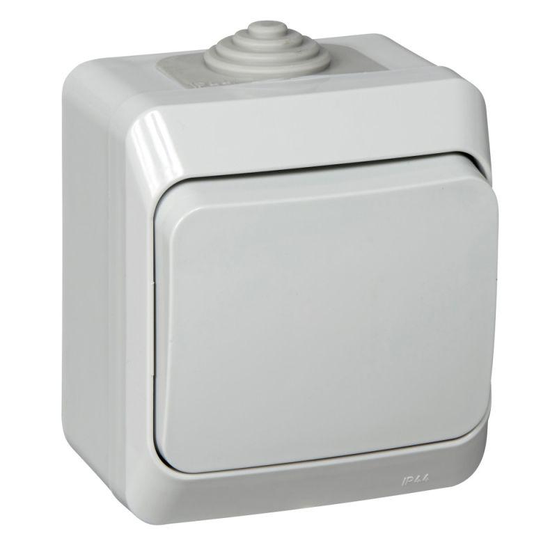 Выключатель Systeme Electric (ранее Schneider Electric) ЭТЮД (серый, открытой установки) одноклавишный предназначен для применения в сетях до 250В, на ток до 10А. Выключатель подходит для большинства типов ламп, включая люминесцентные. Он удобен в применении и отлично подходит для ванной комнаты (IP44). Сделано в России.