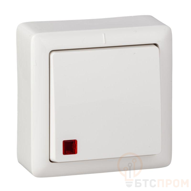 Выключатель одноклавишный Systeme Electric (ранее Schneider Electric) ХИТ (открытой установки, цвет белый) с подсветкой предназначен для сетей до 250 В, на ток до 6 А. Подсветка делает выключатель легко находимым в отсутствие освещения. Двухклавишный выключатель позволяет управлять двумя источниками света с одной точки. Сделано в России.