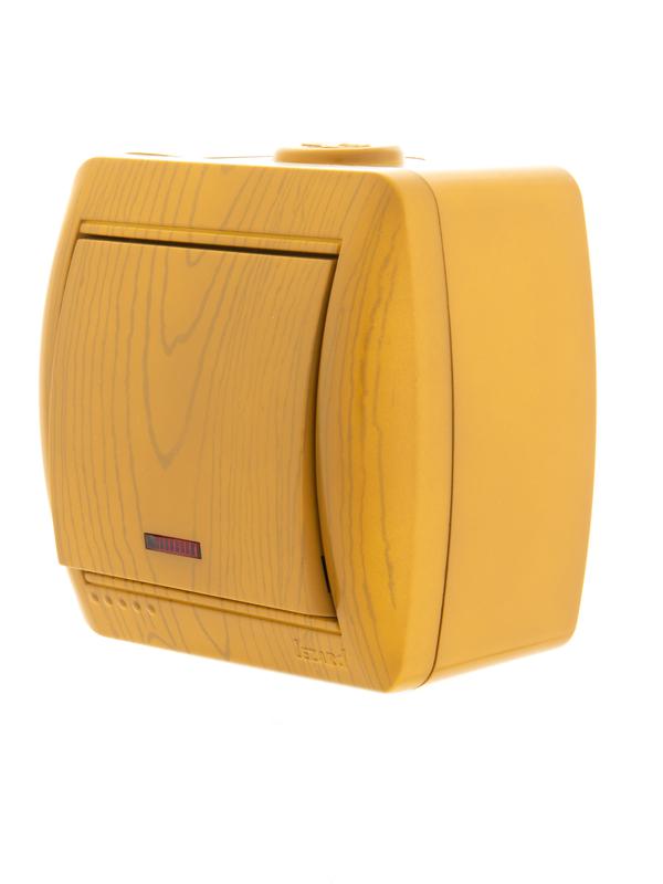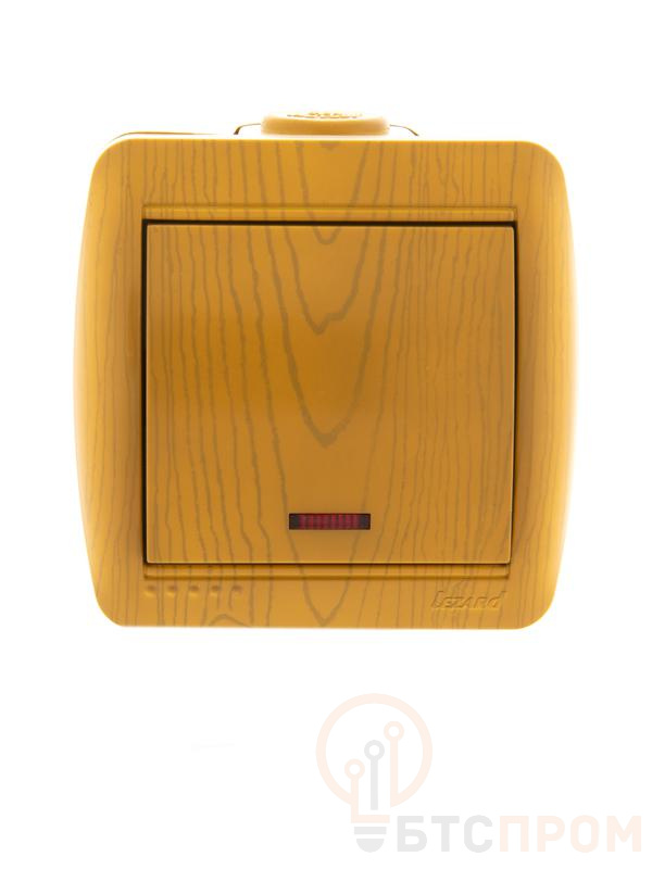 Выключатель 1-кл. ОП Nata 10А IP20 с подсветкой ольха LEZARD 710-0700-111 фото в каталоге от BTSprom.by