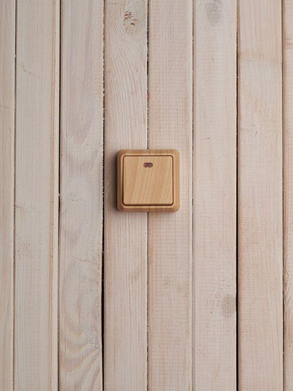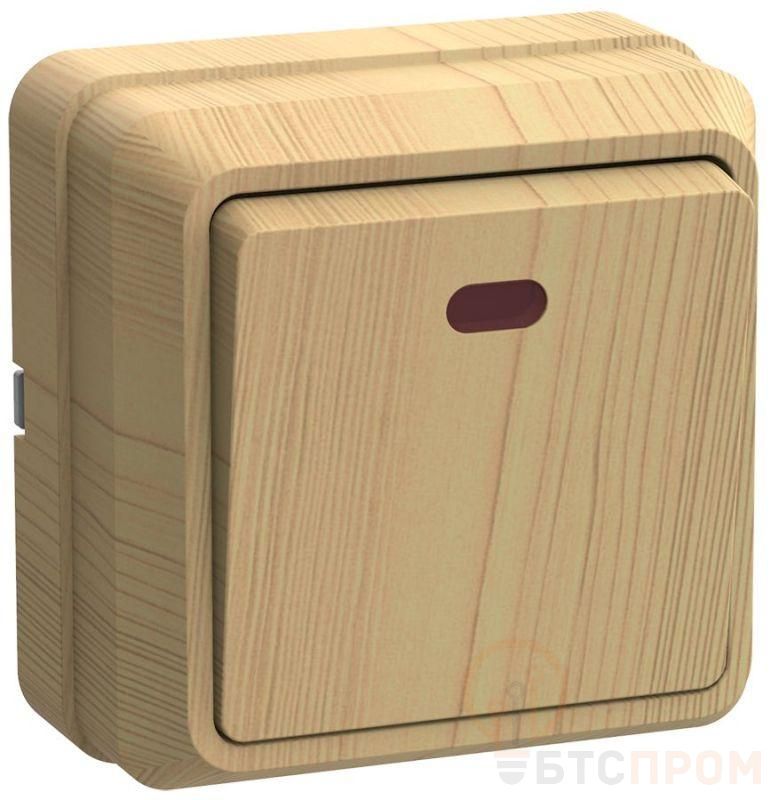 Выключатель 1-кл. ОП Этюд Дача 10А IP20 с подсветкой сосна SE BA10-005D