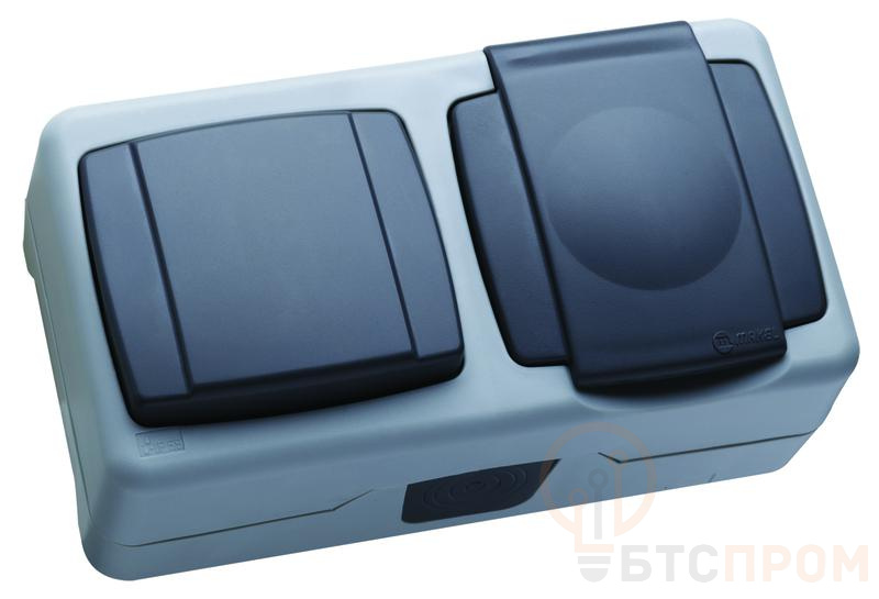 –Выключатель 1-кл. + розетка IP44 с крышкой с пружинным зажимом Makel 37064207