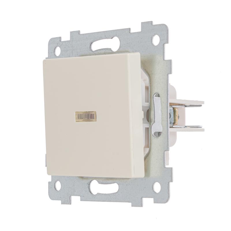 Ключевой особенностью данного выключателя является наличие световой индикации, которая позволяет легко найти его в полной темноте, что особенно удобно в спальнях, коридорах и детских комнатах. Элегантный механизм выполнен в популярном цвете «слоновая кость», который гармонично впишется в классические и современные интерьеры.