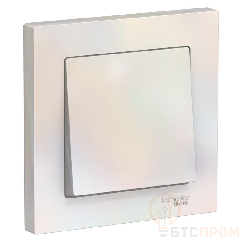 Выключатель 1-клавишный в сборе Systeme Electric (ранее Schneider Electric) серии AtlasDesign в цвете жемчуг подходит для сетей 250 В, на ток 10 А. - Лицевые детали из качественного ABS-пластика, устойчивого к царапинам и УФ-излучению. - Изделие поставляется в комплекте с рамкой того же цвета. - Усиленные прямые монтажные лапки для лучшей фиксации механизма в монтажной коробке.