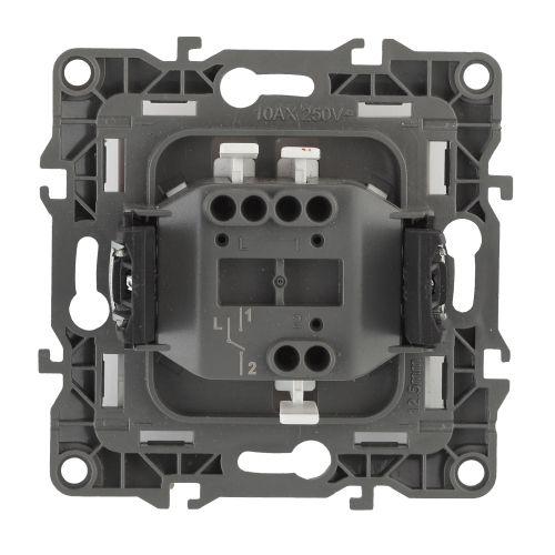 Выключатель 1-клавишный серии Эра 12 скрытой установки механизм цвет слоновая кость 12-1101-02. Номинальные характеристики 10А 250В . Сделан из поликарбоната, оснащёно автоматическими клеммами для быстрй и надёжной фиксации жил кабеля в механиме. Парные клеммы обеспечивают соединение шлейфом. Монтаж в подрозетник производится и на лапки, и на винты. Рамки приобретаются отдельно. Рамки Эра 12: 1 пост 12-5001-хх, 2 поста 12-5002-хх, 3 поста 12-5003-хх, 4 поста 12-5004-хх, 5 постов 12-5005-хх. Рамки Эра 12 Сатин: 1 пост 12-5101-хх, 2 поста 12-5102-хх, 3 поста 12-5103-хх, 4 поста 12-5104-хх, 5 постов - 12-5105-хх (хх - код цвета: 01-белый, 02-слоновая кость, 03-алюминий, 04-шампань, 05-антрацит, 06-чёрный, 07-ольха(белёный дуб-сатин), 08-вишня, 09-дуб, 10-венге, 11-сосна, 21-жёлтый, 22-оранжевый, 23-красный, 24-охра, 25-бордо, 26-лайм, 27-зелёный, 28-голубой, 29-синий).