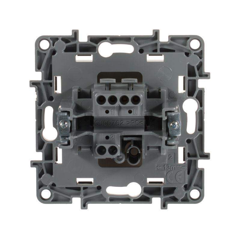 Выключатель одноклавишный ETIKA для скрытого монтажа, номинальный ток 10 А, предназначен для установки в электрических сетях жилых и общественных зданий и используется для управления приборами освещения, вентиляции и т.д.