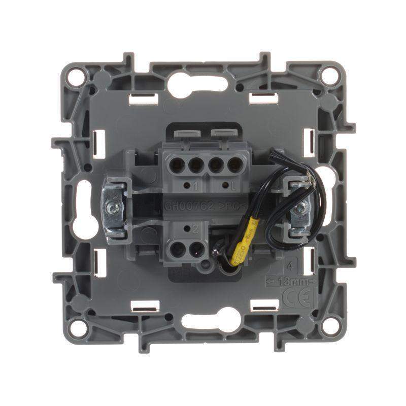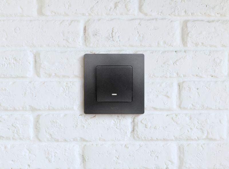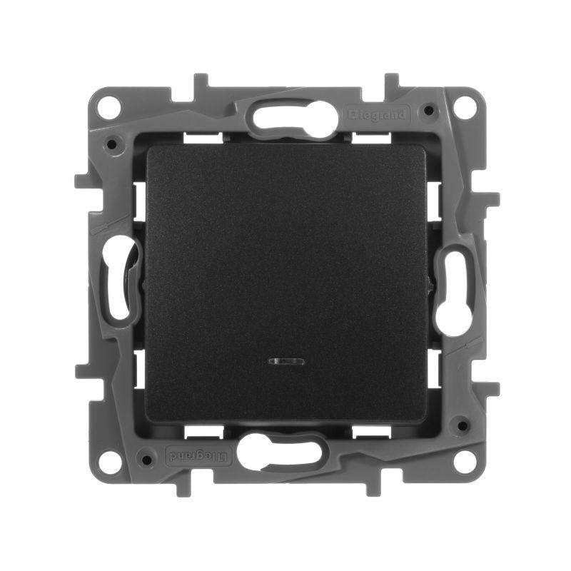 Выключатель с подсветкой одноклавишный ETIKA для скрытого монтажа, номинальный ток 10 А. Используется для управления приборами освещения, вентиляции и т.д.