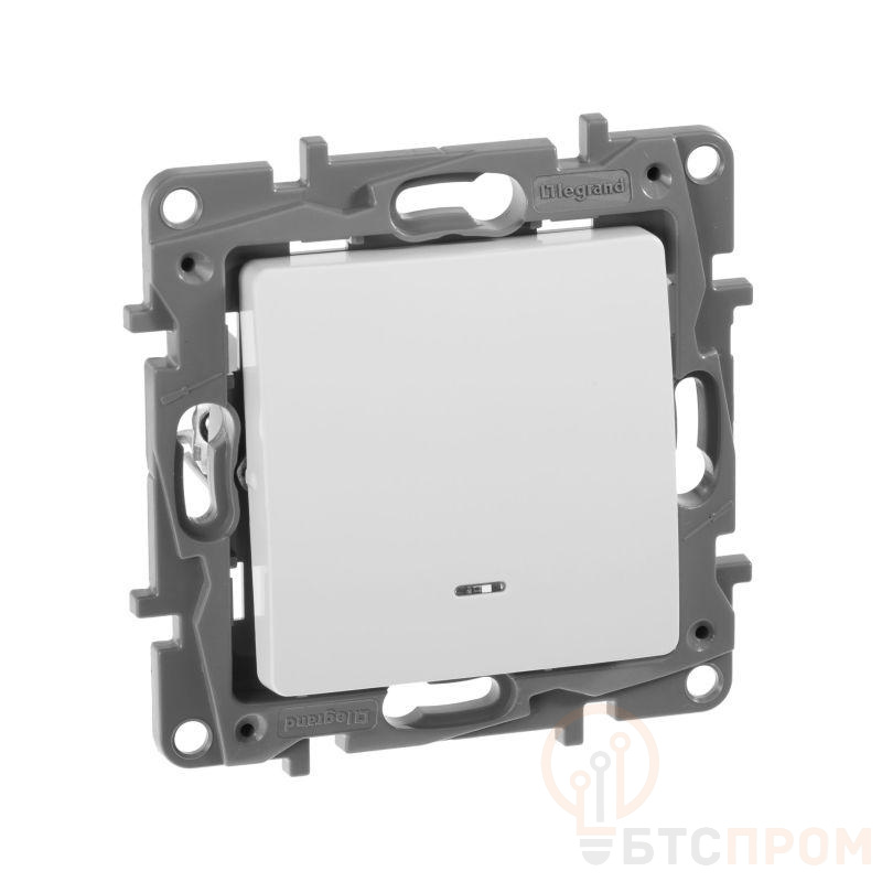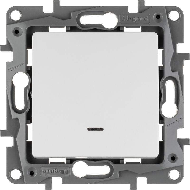 Выключатель с подсветкой одноклавишный ETIKA для скрытого монтажа, номинальный ток 10 А. Используется для управления приборами освещения, вентиляции и т.д.