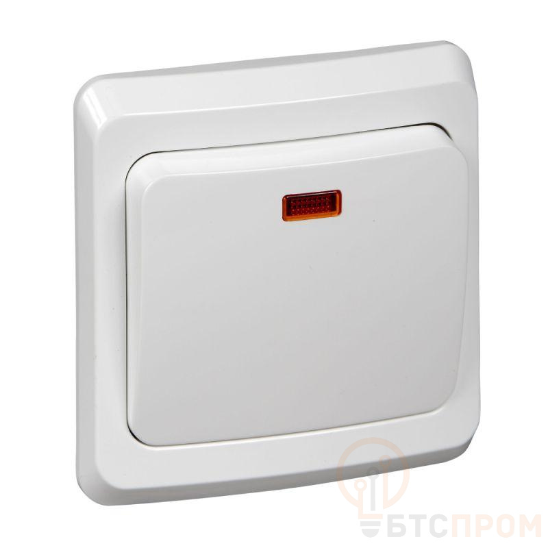 Выключатель Systeme Electric (ранее Schneider Electric) ЭТЮД (белый, скрытой установки) одноклавишный, предназначен для применения в сетях до 250В, на ток до 10А. Наличие подсветки делает его легко находимым при отсутствии освещения. Выключатель подходит для большинства типов ламп, включая люминесцентные. Сделано в России.