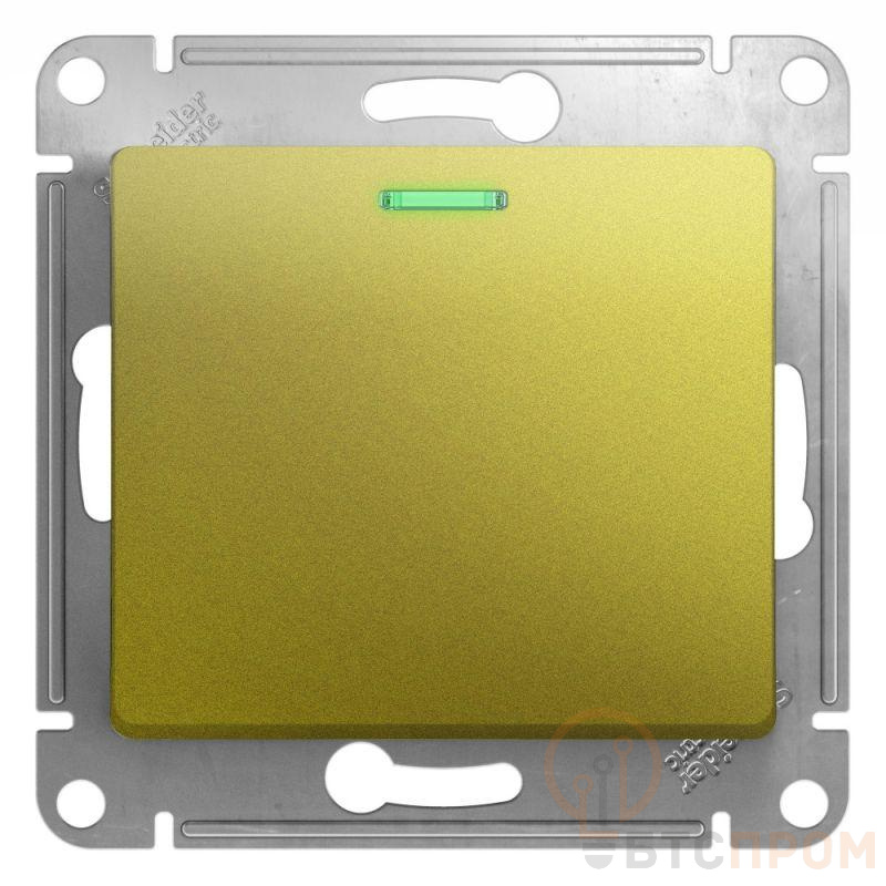 Механизм Glossa (цвет фисташковый) выключателя 1-клавишного с подсветкой подходит для сетей 250 В, на ток 10 А. - Благодаря современной светодиодной подсветке зеленого цвета изделие легко найти в темноте. - Выполнен из материала PС+ASA, стойкого к УФ-излучению и появлению царапин. - Эргономичные клеммы расположены в два ряда: сверху и снизу.