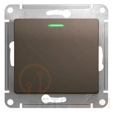 Механизм Systeme Electric (ранее Schneider Electric) серии Glossa (цвет шоколад) выключателя 1-клавишного с подсветкой подходит для сетей 250 В, на ток 10 А. - Благодаря современной светодиодной подсветке зеленого цвета изделие легко найти в темноте. - Выполнен из материала PС+ASA, стойкого к УФ-излучению и появлению царапин. - Эргономичные клеммы расположены в два ряда: сверху и снизу.