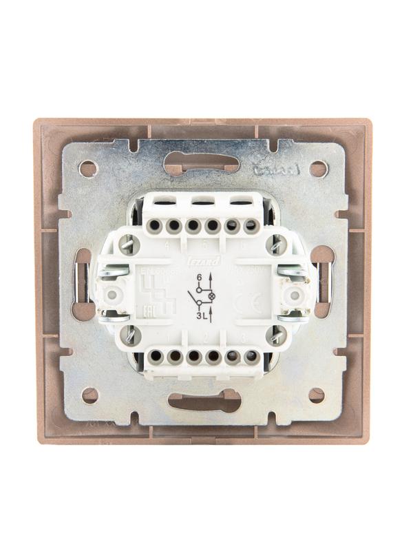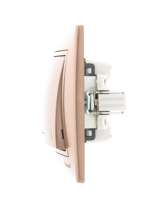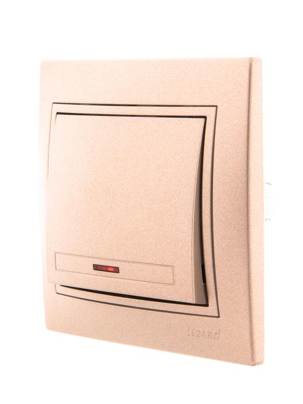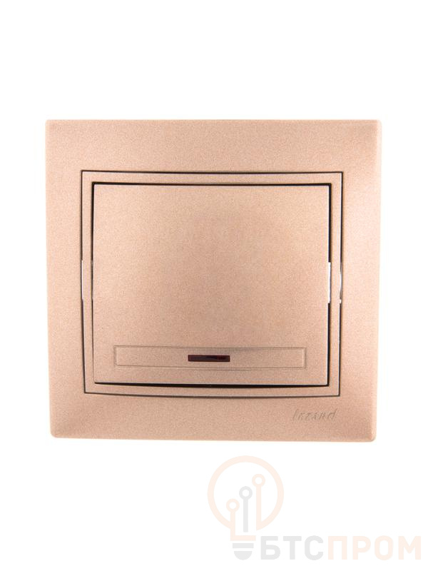 Выключатель 1-кл. СП Mira 10А IP20 с подсветкой со вставкой свет. корич. перламутр. LEZARD 701-3131-111