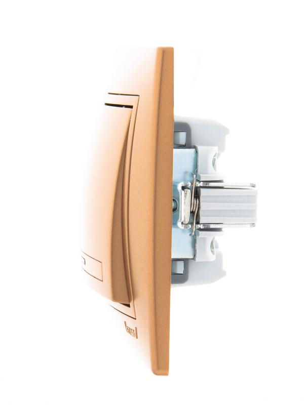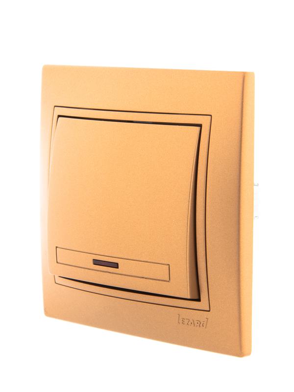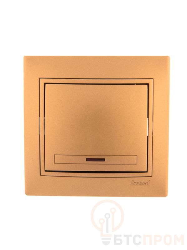 Выключатель 1-кл. СП Mira 10А IP20 с подсветкой со вставкой зол. метал. LEZARD 701-1313-111 фото в каталоге от BTSprom.by