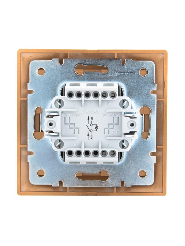 переключатель проходной 1-кл. сп mira 10а ip20 со вставкой зол. метал. lezard 701-1313-105 от BTSprom.by