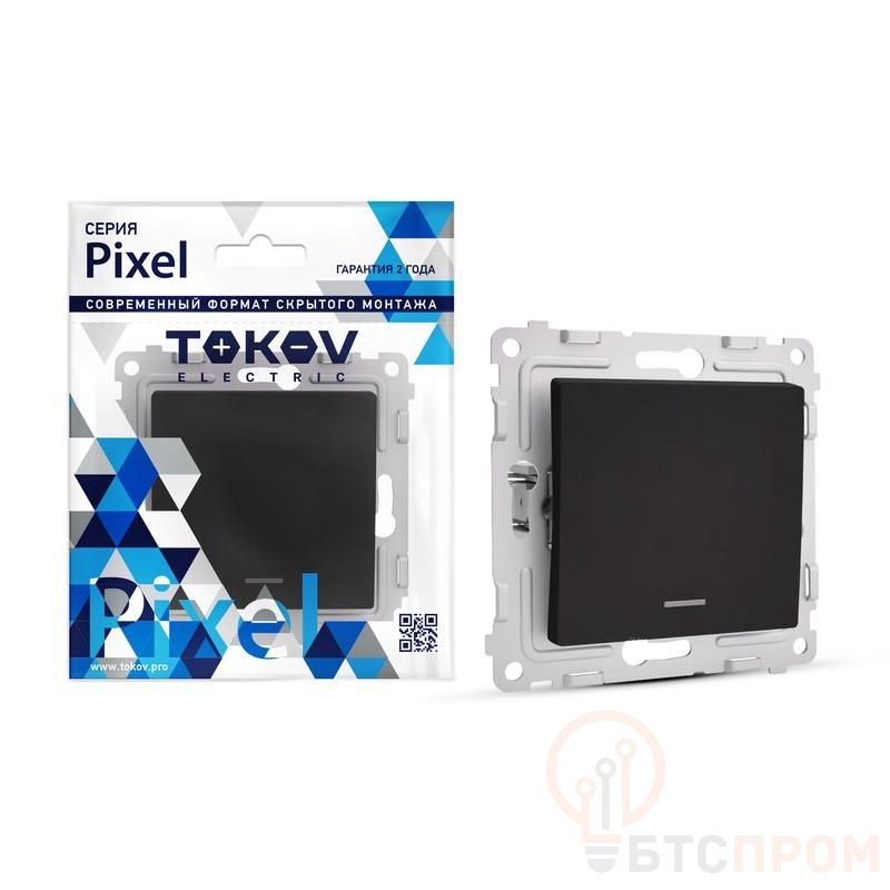 Выключатель 1-кл. СП Pixel 10А IP20 в сборе карбон TOKOV ELECTRIC TKE-PX-V1F-C14