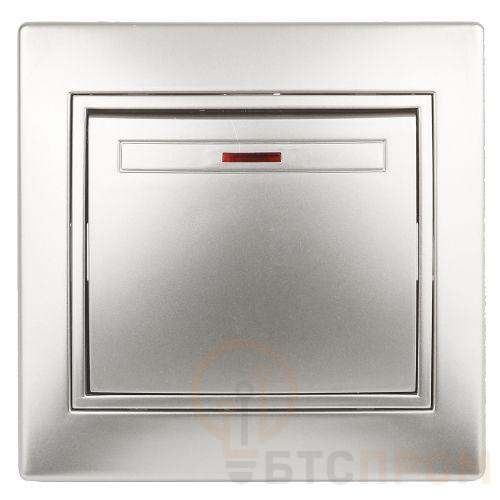 Выключатель одноклавишный с подсветкой, 10А-250В, IP20, СУ, алюминий Intro Plano 1-102-03
