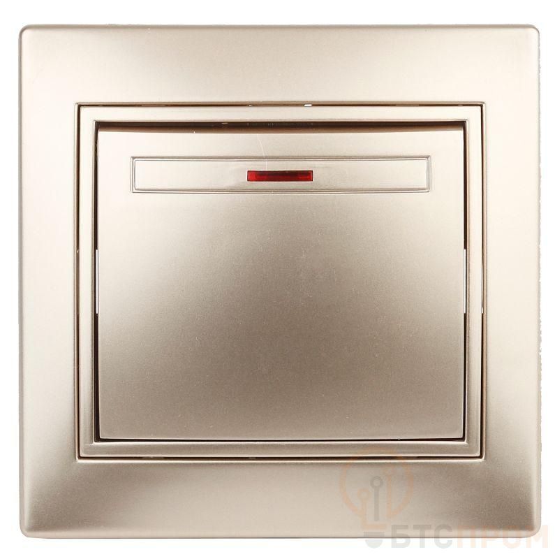Выключатель одноклавишный с подсветкой, 10А-250В, IP20, СУ, шампань Intro Plano 1-102-04