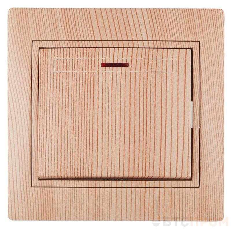 Выключатель одноклавишный с подсветкой, 10А-250В, IP20, СУ, сосна Intro Plano 1-102-11