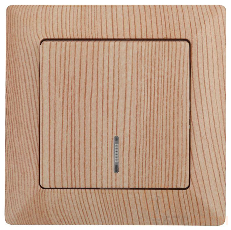Выключатель Intro Solo 4-102-11 одноклавишный с подсветкой, 10А-250В, IP20, СУ, сосна