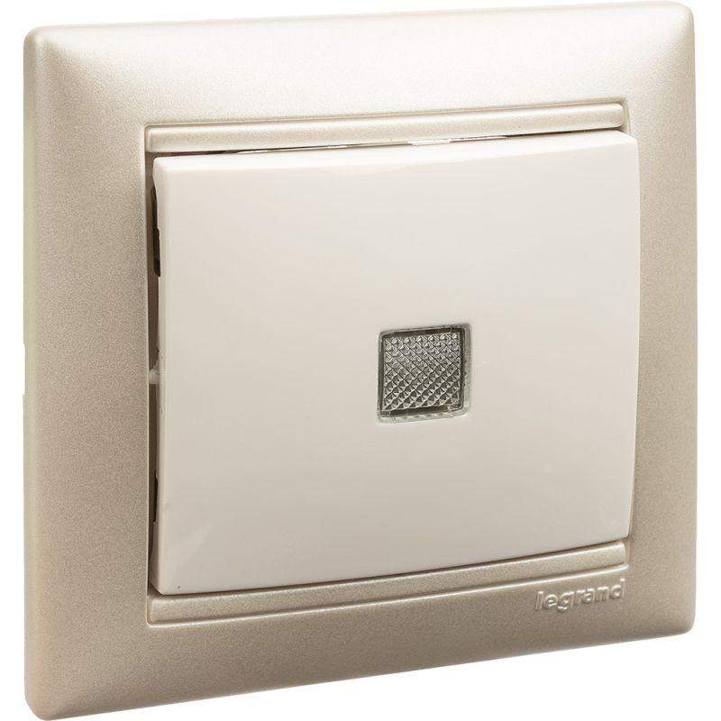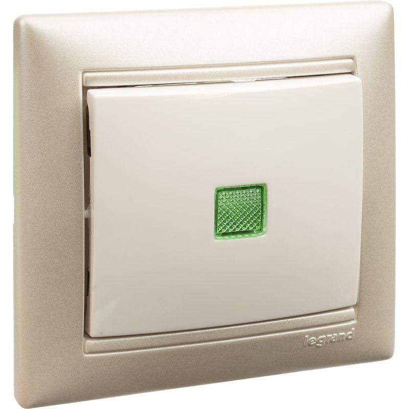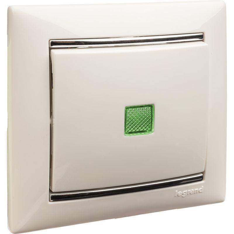 Выключатель одноклавишный с подсветкой VALENA для скрытого монтажа, номинальный ток 10 А, предназначен для установки в электрических сетях жилых и общественных зданий и используется для управления приборами освещения, вентиляции и т.д. Встроенная подсветка служит для упрощения поиска выключателя в темноте.