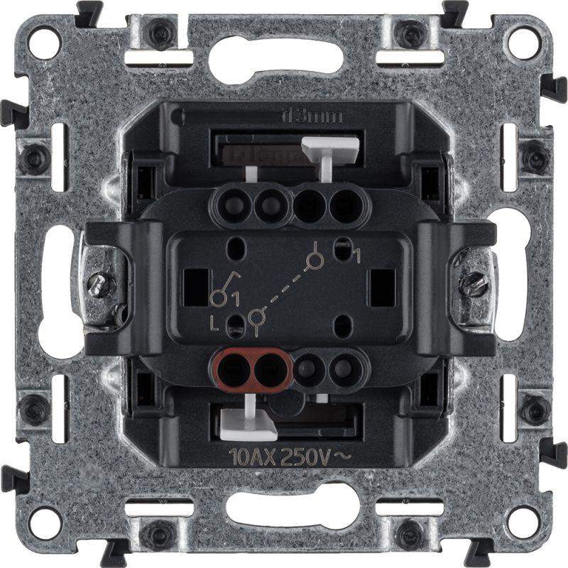 Механизм выключателя 1-кл. СП Valena Allure 10АХ 250В с лицевой панелью; безвинтовые зажимы бел. Leg 752701 – электроустановочный механизм. Представляет собой одноклавишный выключатель, из пластика, с лицевой панелью белого цвета, скрытой установки, монтируемый под штукатурку.